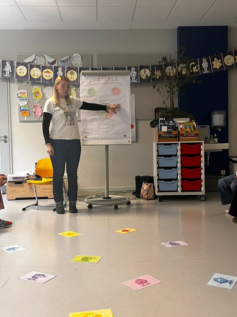 So begrüßt Marjana Wellhausen die Kinder des 2. Jahrgangs in der vergangenen Woche beim Resilienztraining. Spielerisch und altersgerecht lernen die Schülerinnen und Schüler, wie sie Konflikte gewaltfrei lösen, ihre eigenen Grenzen erkennen und andere respektieren können.